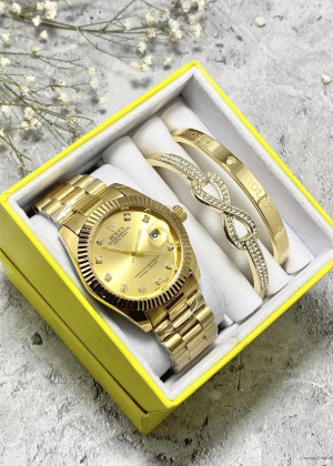 Подарочный набор для женщин часы, 2 браслета + коробка #23245011