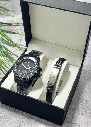 Подарочный набор для мужчины часы и браслет + коробка #23245259
