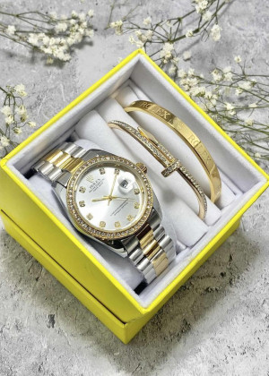 Подарочный набор для женщин часы, 2 браслета + коробка #23304518